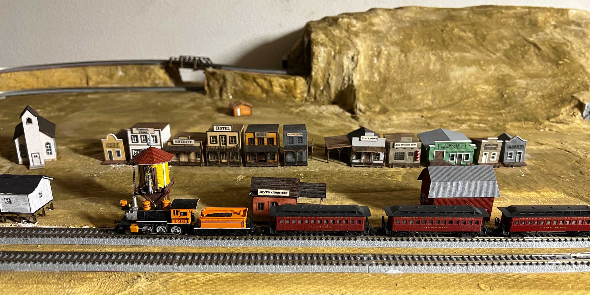 This is a work in progress. I'm starting by developing an old west town diorama and will add to a layout later. See below for images of the town. I'm still working on the landscaping. The final layout will include a mine as well as my Marklin Denver & Rio Grande Western train.